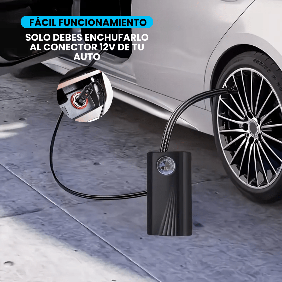 Olvidate de buscar enchufes. Este inflador se conecta directamente a la entrada 12V del vehículo, listo para usar en cualquier momento y lugar.